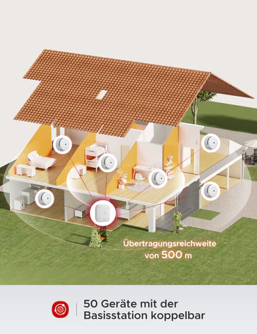 - Viele X-Sense-Modelle lassen sich drahtlos miteinander vernetzen, sodass wenn ein Melder Rauch erkennt, alle anderen ebenfalls Alarm geben (über Funk oder Basisstation).